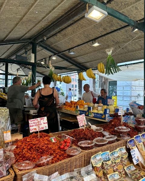 The Rialto Market is where Venice wakes up. For centuries, locals have come here to pick up fresh seafood, fruits, and vegetables, and the tradition is still alive today. It’s loud, colorful, and full of energy, the kind of place where you catch a real glimpse of daily Venetian life. Even if you don’t buy anything, wandering through the stalls is an experience in itself.